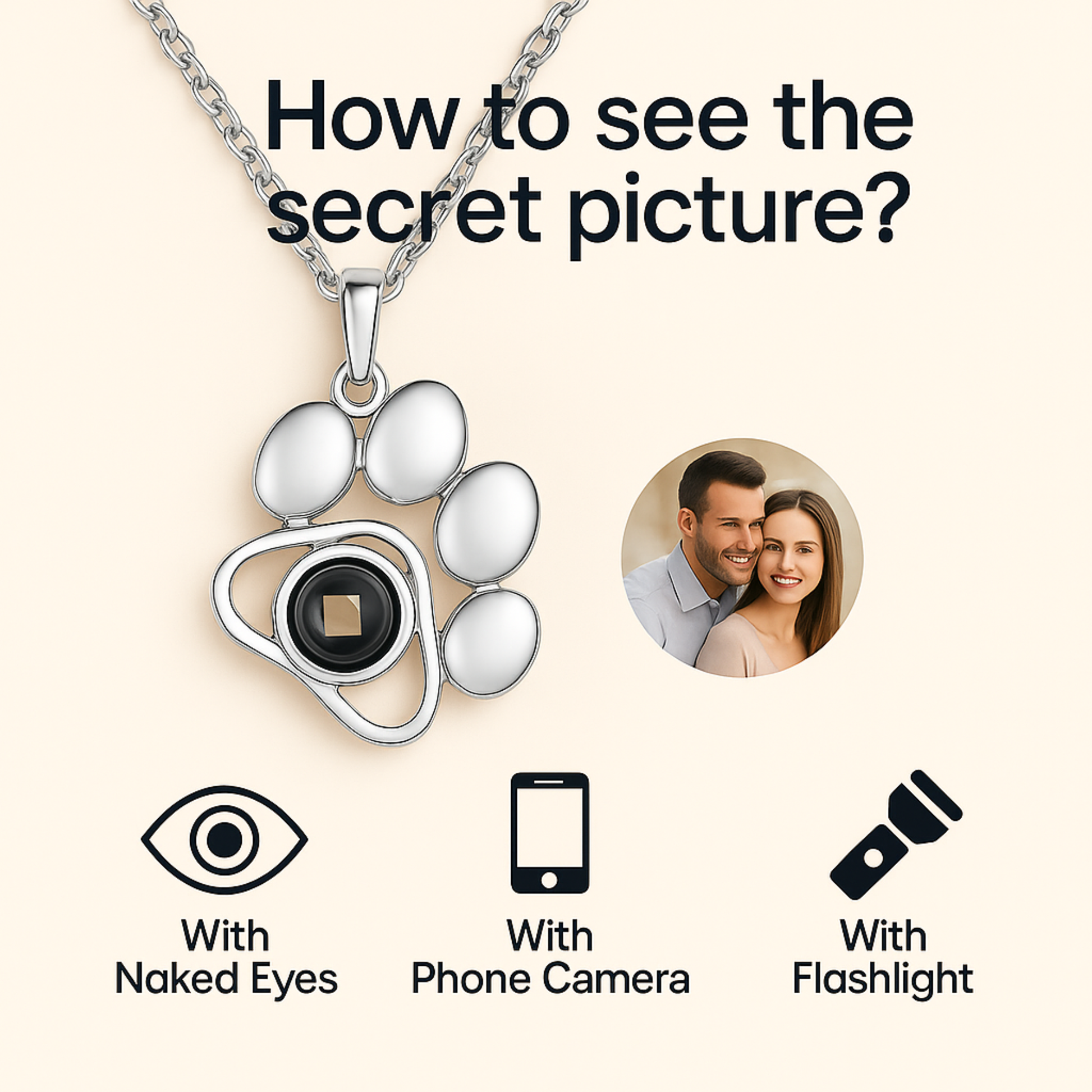 Look closely through the center of the pendant or shine your phone’s light onto it — the hidden photo will appear inside the lens. It’s a small and beautiful surprise that keeps your memory always close to you.