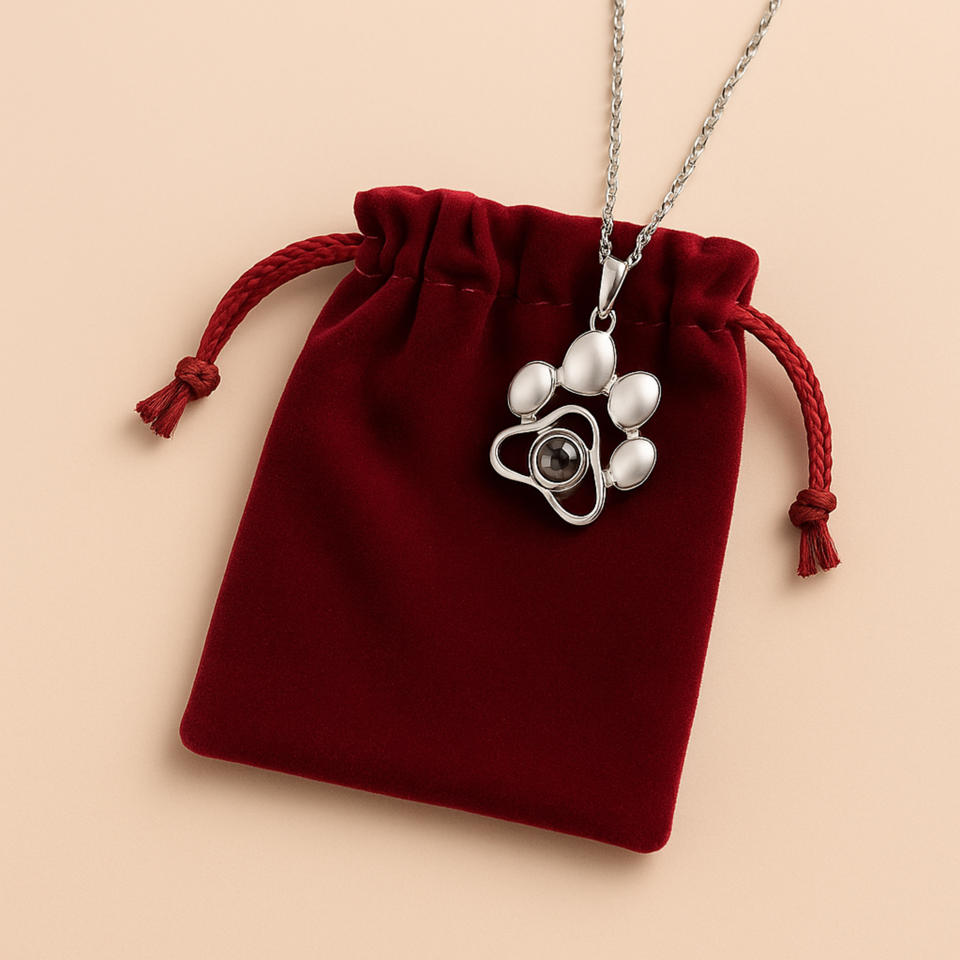 Each necklace arrives inside a soft red velvet pouch, elegant and secure. It’s perfect for gifting or keeping your pendant safe when you’re not wearing it. Simple, warm, and meaningful packaging.